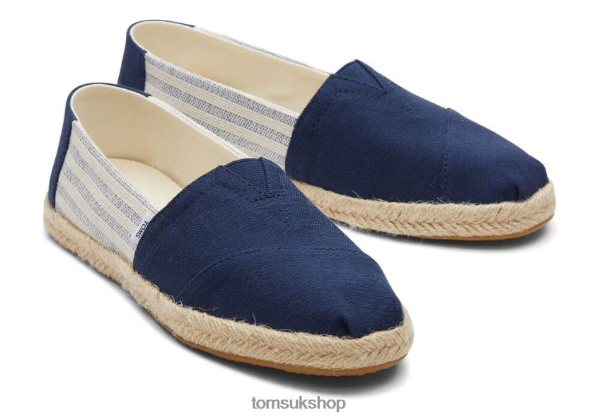Toms Women Alpargata Eco Recycled Cotton Rope Espadrille Navy Stripes Shoes Z480RF151