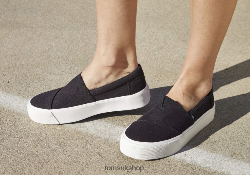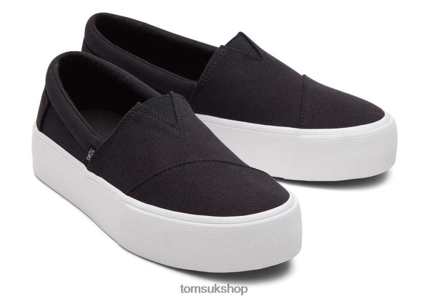 Toms Women Fenix Platform Black Canvas Shoes Z480RF240