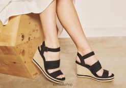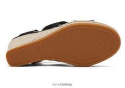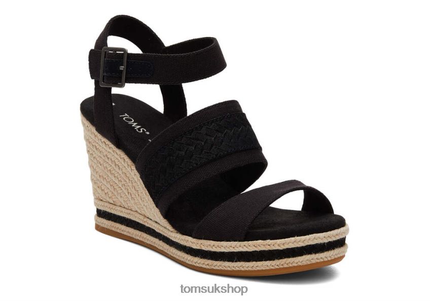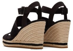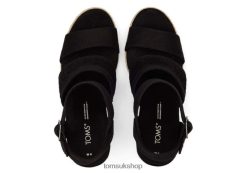 Toms Women Madelyn Wedge Sandal Black Canvas Shoes Z480RF221